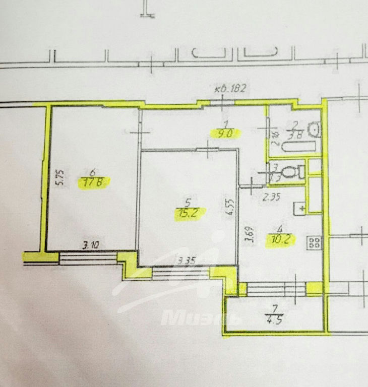 Комнаты: 17.8 15.2 м2