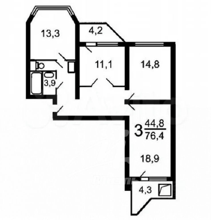 Общая: 76,1 м2