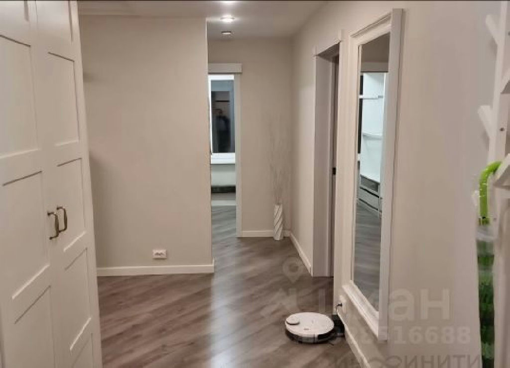 Современный, светлый и качественный ремонт: ламинат одним полотном, стены штукатурка с покраской, в одной из спален жидкие шелковые обои, дорогая сантехника, мебель в ванной из массива, удобная гардеробная и новые батареи. окна на 3 стороны, поэтому в квартире всегда много света. Есть лоджия, тоже с ремонтом и пластиковыми окнами.