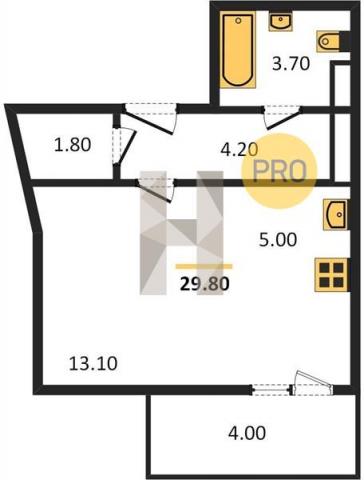 Общая: 29,8 м2